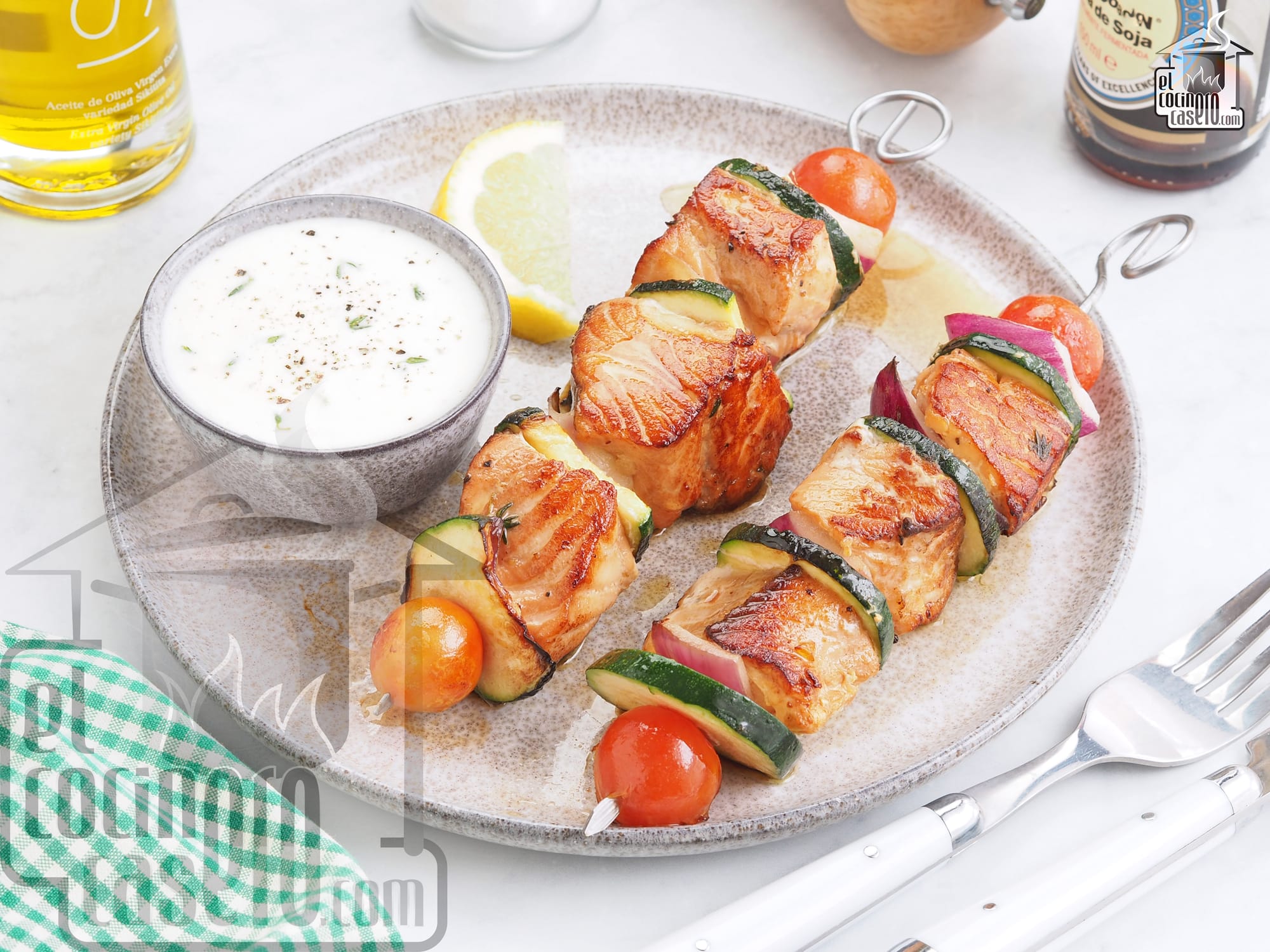 Brochetas de salmón a la plancha