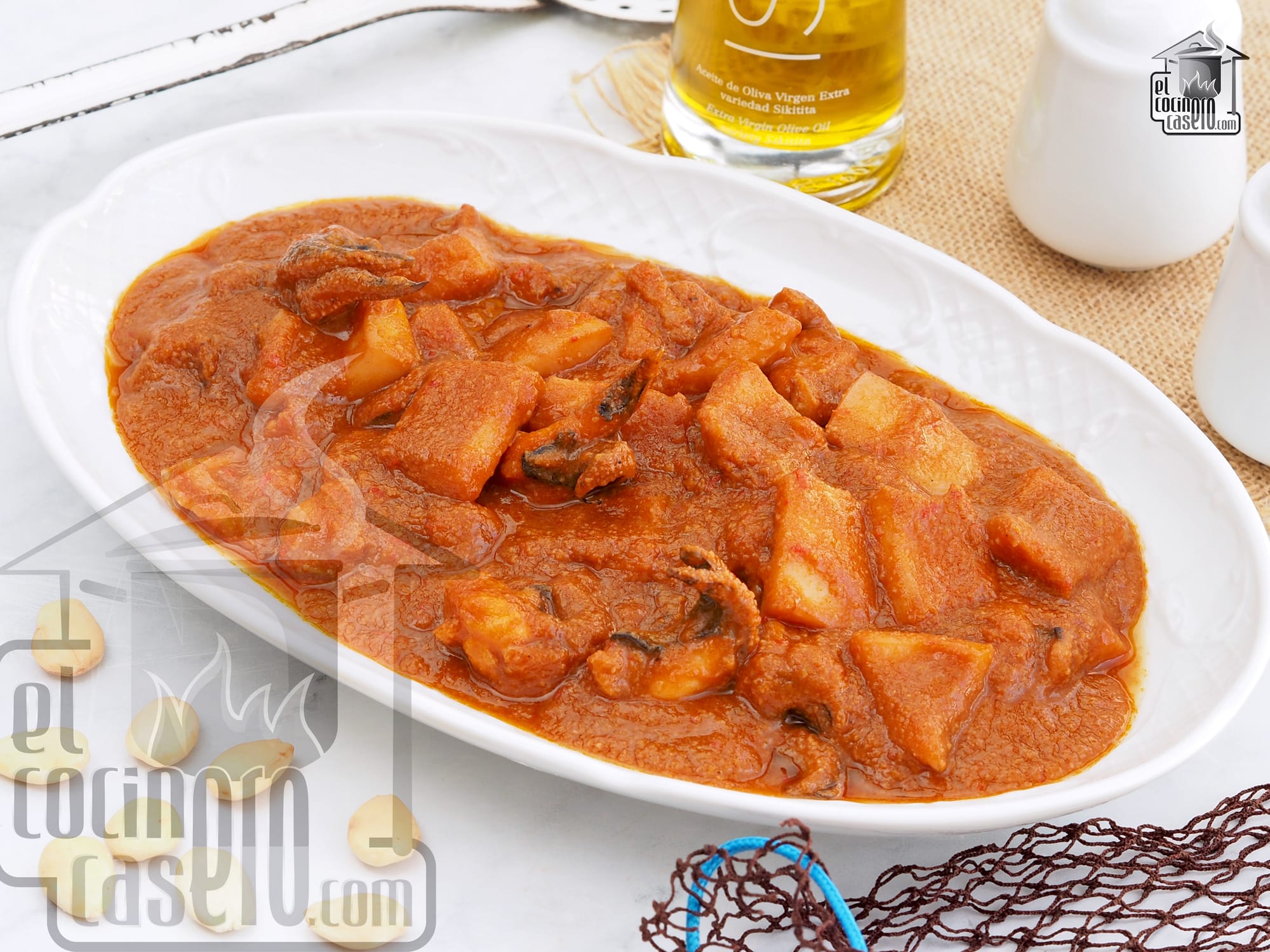 La jibia en salsa al estilo de Almería es un guiso marinero típico de esta región andaluza que consiste en un guiso de sepia (jibia) es una salsa deliciosa hecha a base de un sofrito de verduras con caldo de pescado y almendras fritas.