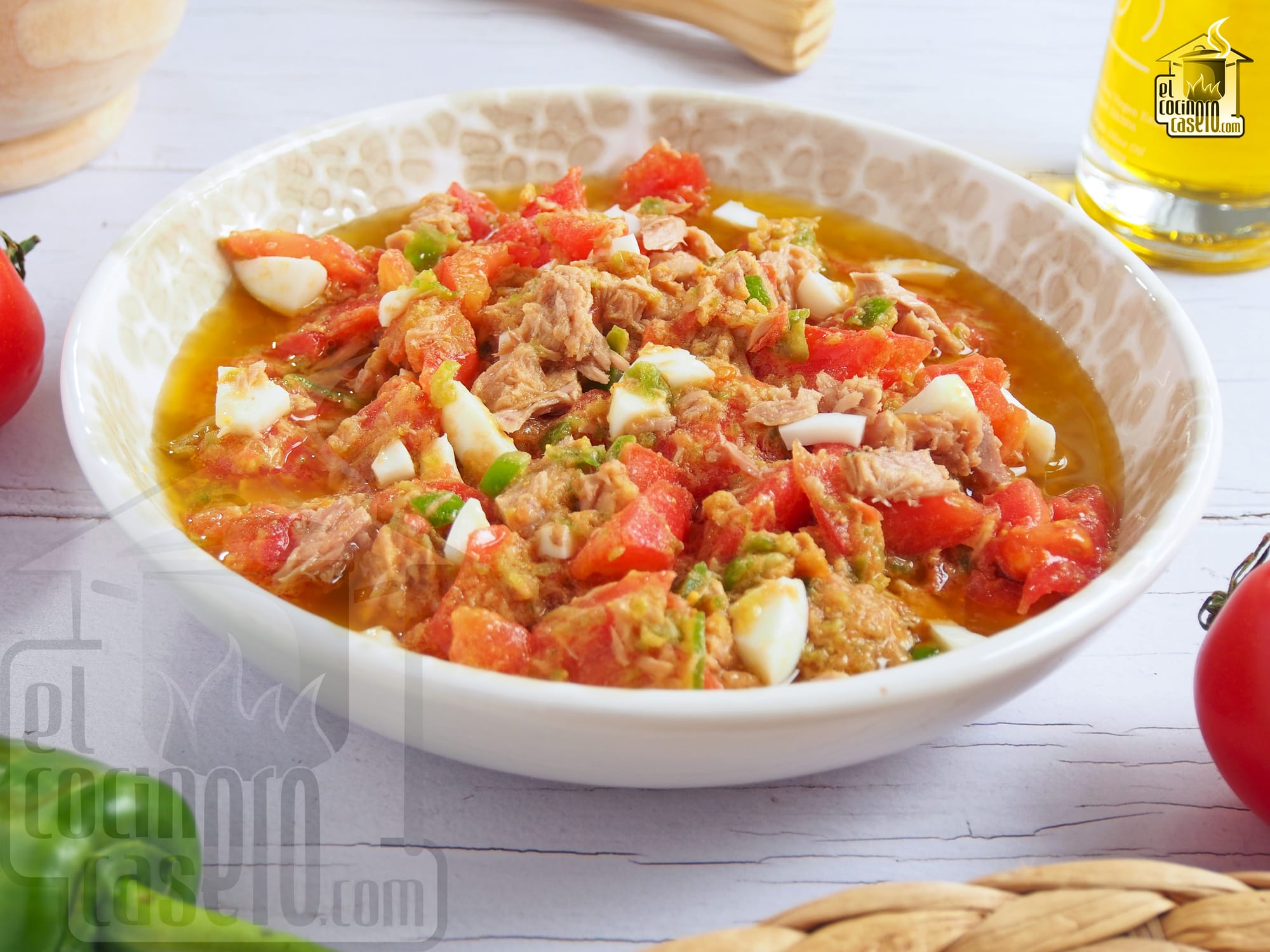 La Pipirrana es el plato por excelencia de la cocina de Jaén capital. Se trata de una ensalada de verano cuyo ingrediente principal es el tomate y el pimiento verde. Se acompaña de huevo cocido y atún y lo más característico es un majado que se prepara con ajo, yema de huevo cocida y aceite de oliva virgen extra, que junto con el líquido que suelta el tomate, hace que quede un aliño delicioso.