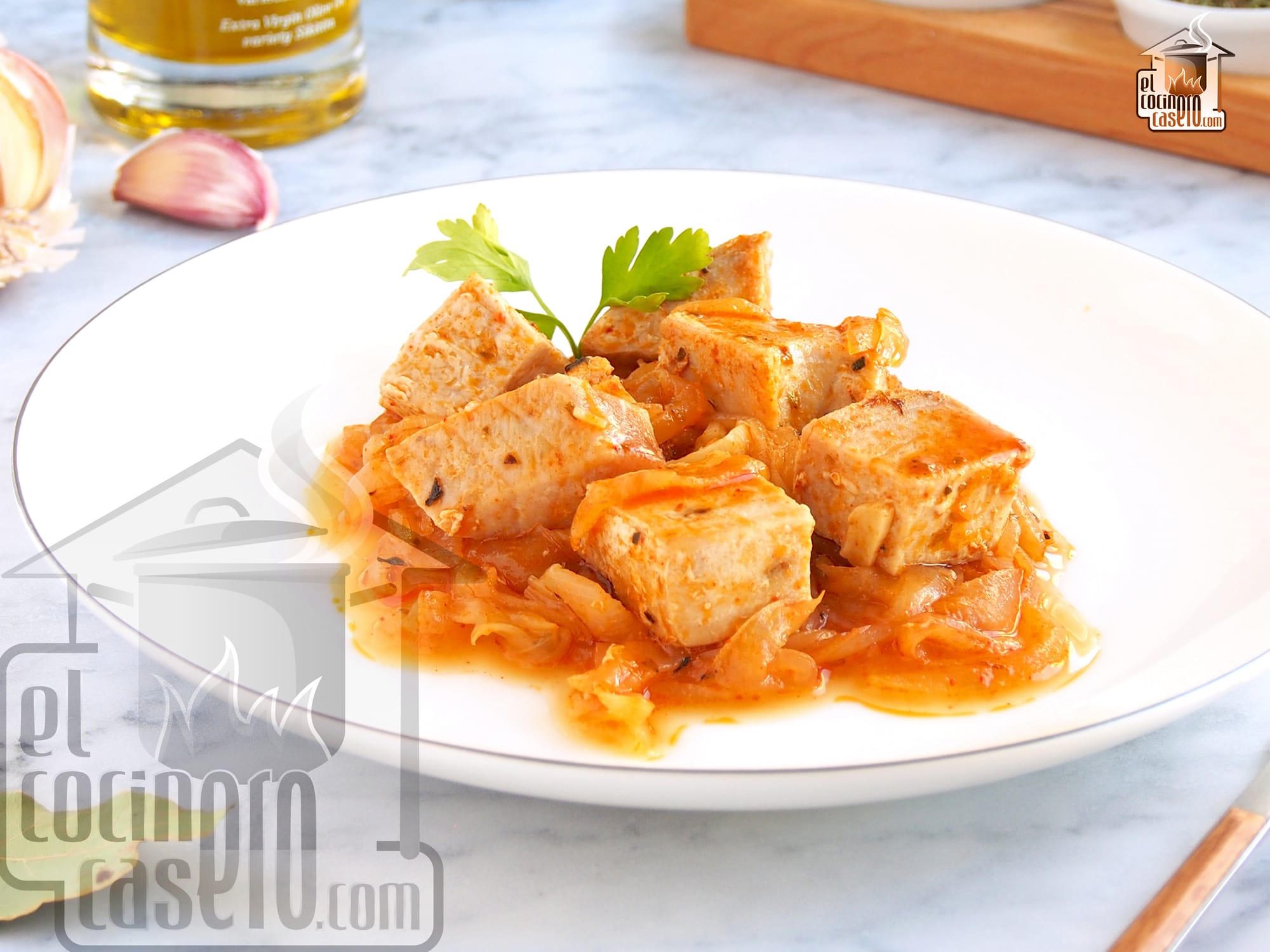 Atún encebollado