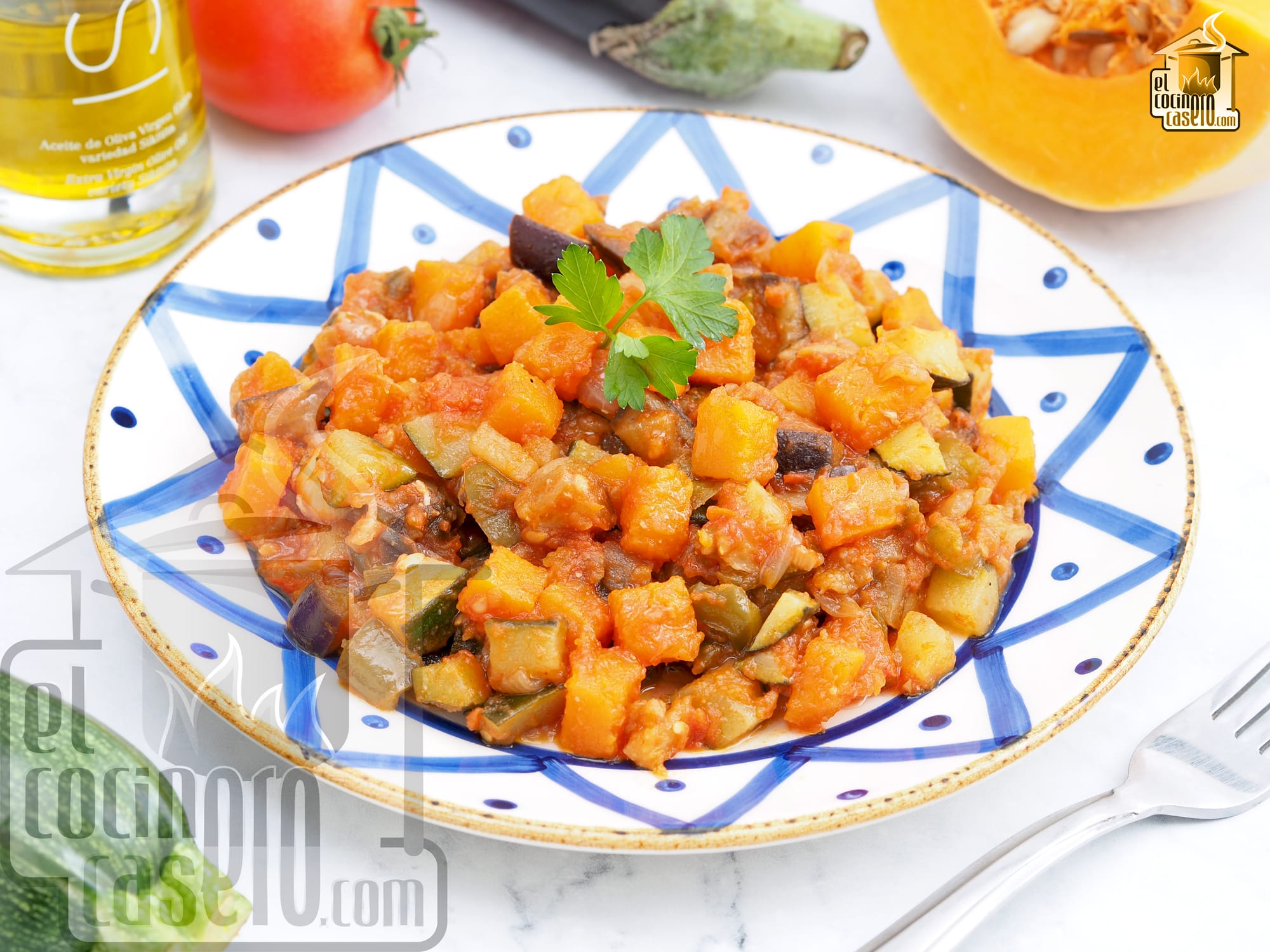 La alboronía también se conoce como pisto andaluz o pisto de berenjenas ya que realmente se trata de una especie de pisto que se prepara siempre con berenjenas y también calabaza. Es un plato de origen árabe y de ahí el protagonismo de estos ingredientes tan habituales en la gastronomía andalusí mucho antes de que llegaran a España el tomate y los pimientos con el descubrimiento de América.