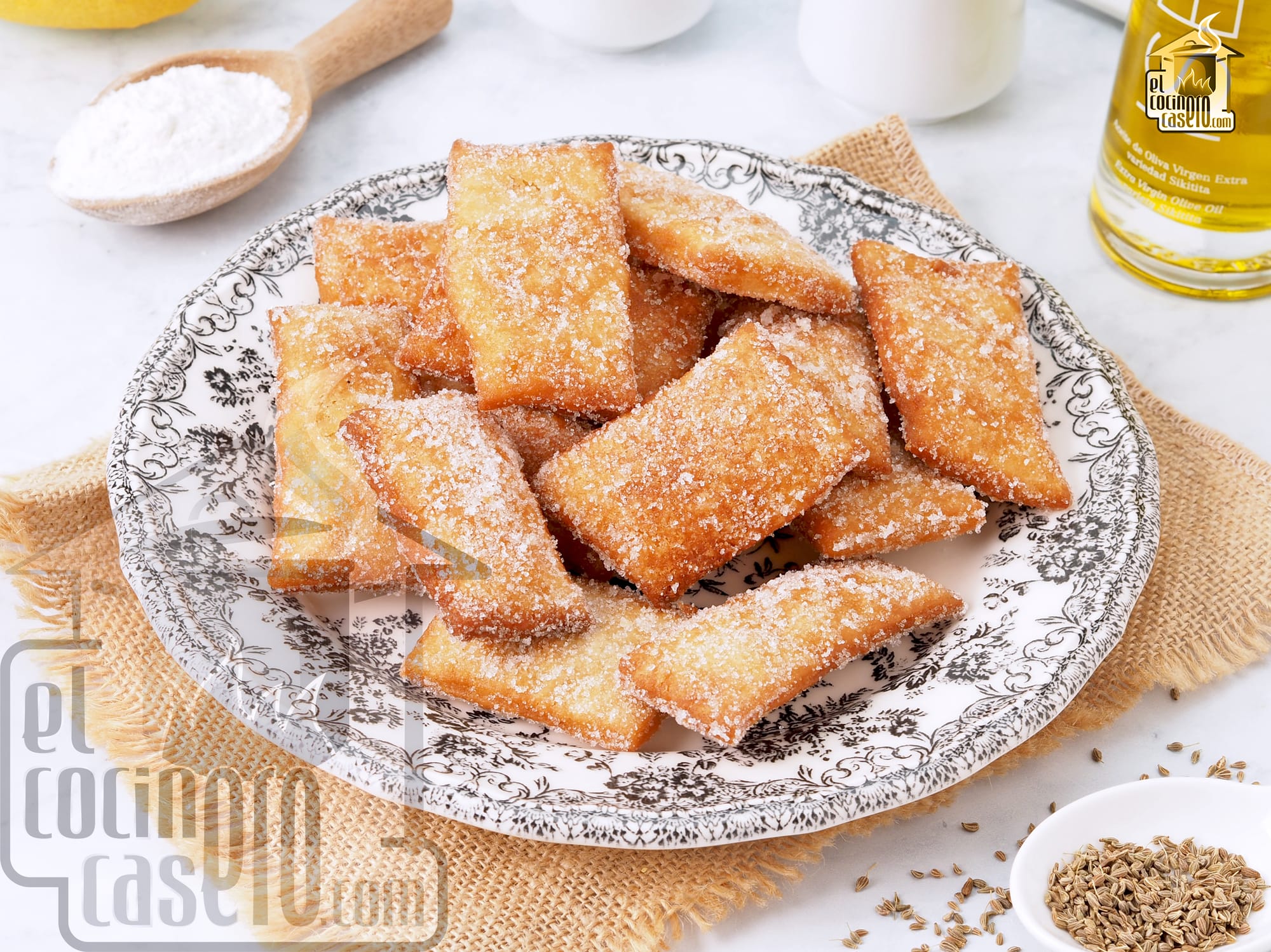 Los engañabobos son un dulce tradicional andaluz, típicos de un pueblo de Huelva llamado Alosno, que consisten en unos pequeños bocados fritos y embadurnados en azúcar y que tienen un aroma y sabor a anís y limón buenísimos. Los engañabobos deben su nombre a que en principio parece que son unos pequeños bocados de hojaldre que van a tener algún relleno interior pero que al darles el primer mordisco, están vacíos por dentro y se deshacen en la boca.