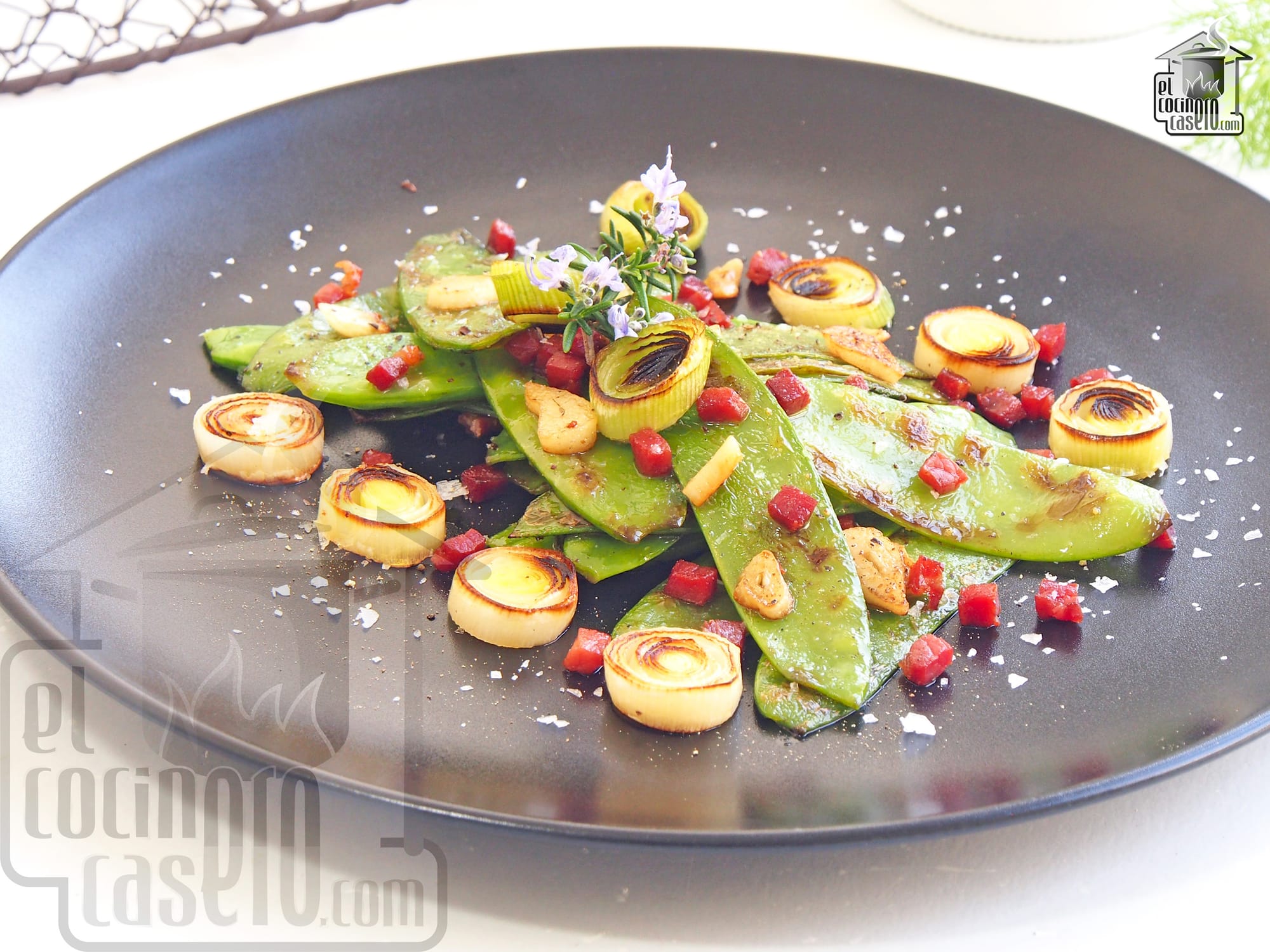 Tirabeques salteados con jamón serrano