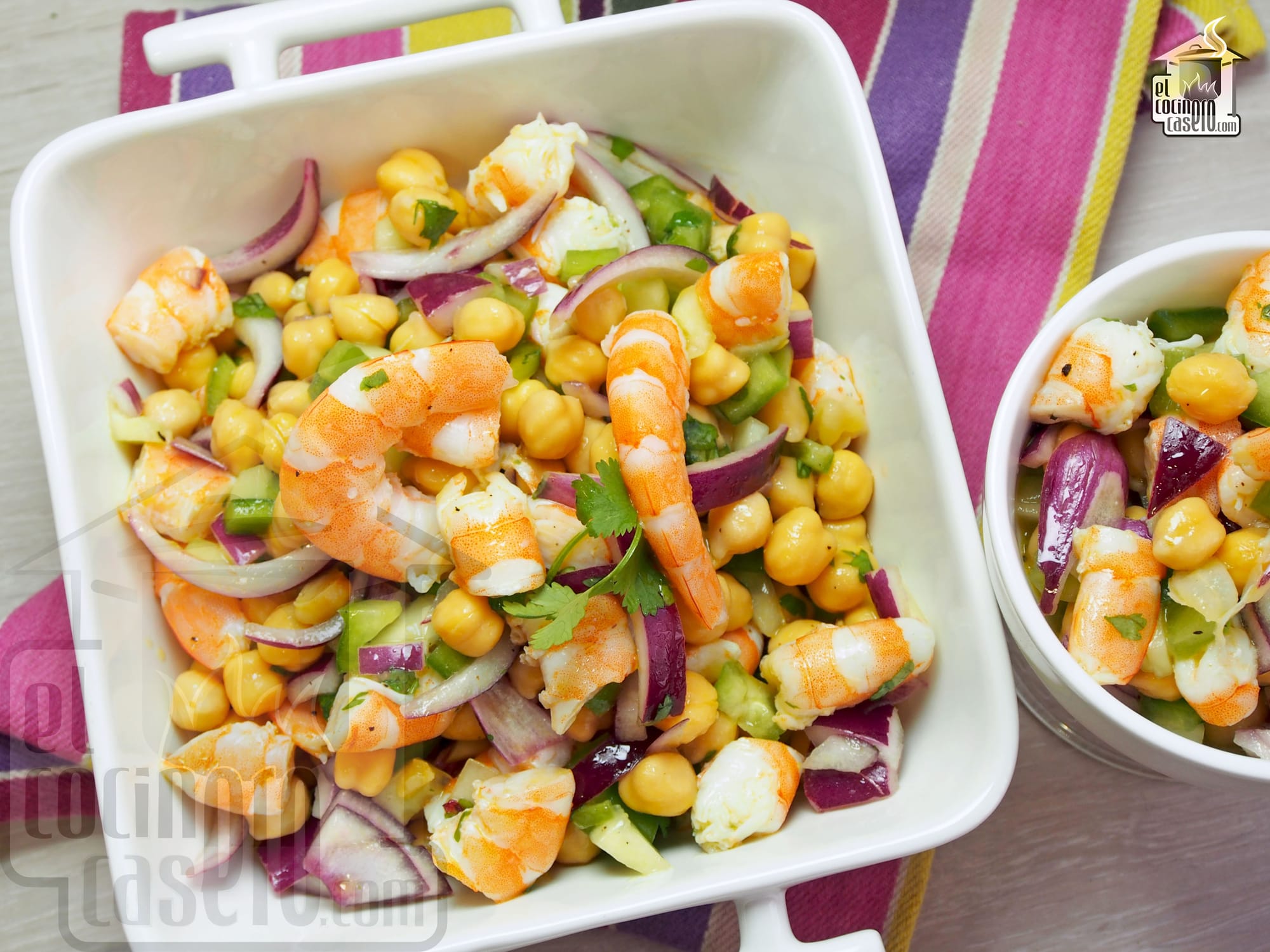 Ensalada de garbanzos con langostinos y cilantro