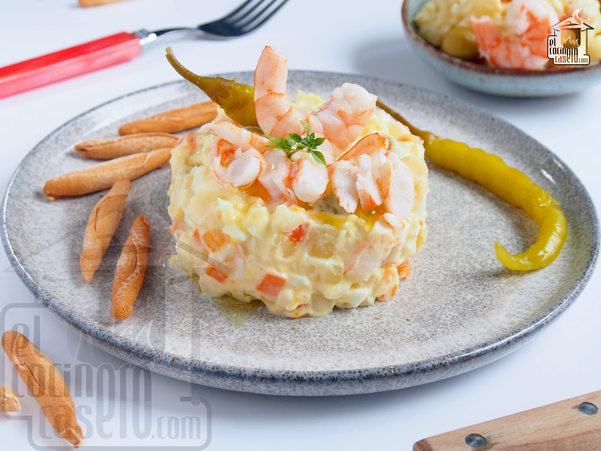 Si queremos dejar preparado el entrante con antelación, podemos optar por una ensaladilla especial como esta ensaladilla de gambas que fresquita de la nevera, entra de maravilla.