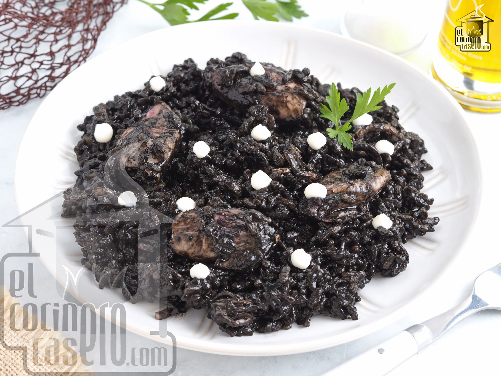 El arroz negro con chipirones es uno de los arroces marineros más típicos de la cocina española y en esta ocasión, lo preparamos con chipirones frescos y acompañado de unos puntitos de alioli.