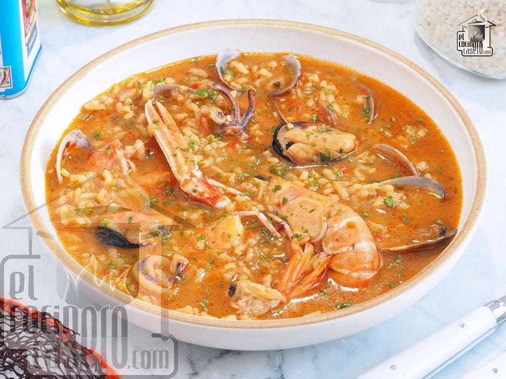 Este arroz caldoso de marisco lo preparamos con almejas, mejillones, cigalas, langostinos y calamares pero los ingredientes se pueden adaptar al gusto de cada casa.