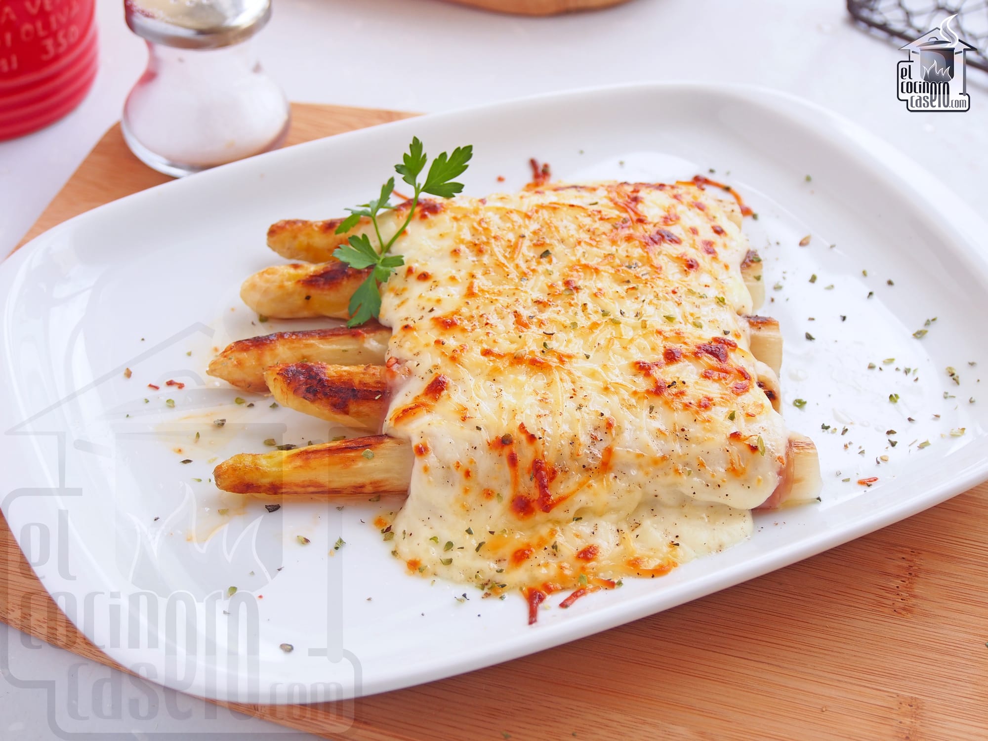 - Cena: para la cena y aprovechando que ya podemos disfrutar de los primeros espárragos blancos, podemos preparar estos espárragos blancos gratinados al horno con jamón cocido y bechamel.