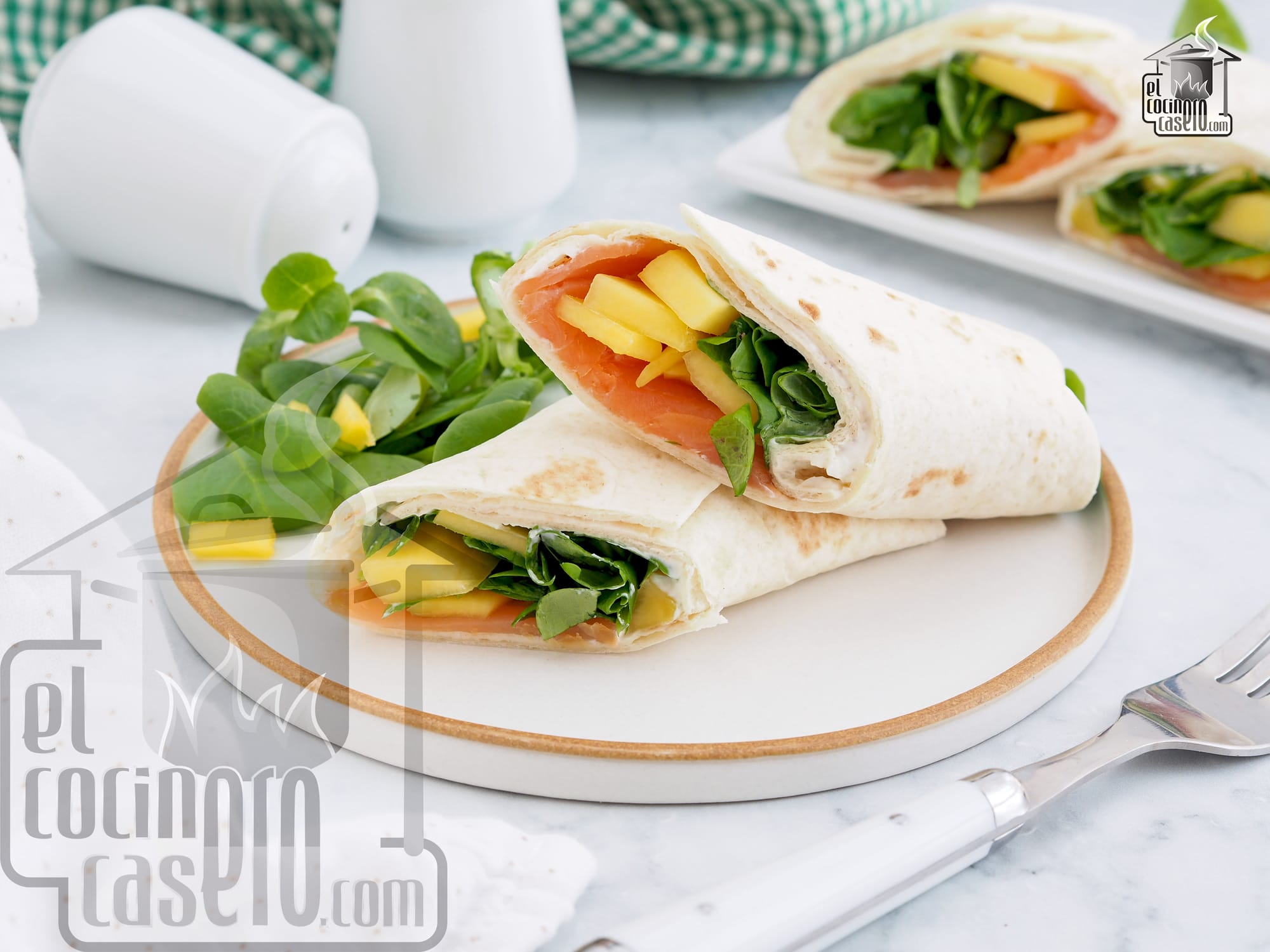- Cena: para la cena podemos hacer esos sencillos pero resultones wraps de salmón ahumado con mango que se preparan en un plis plas y están riquísimos.