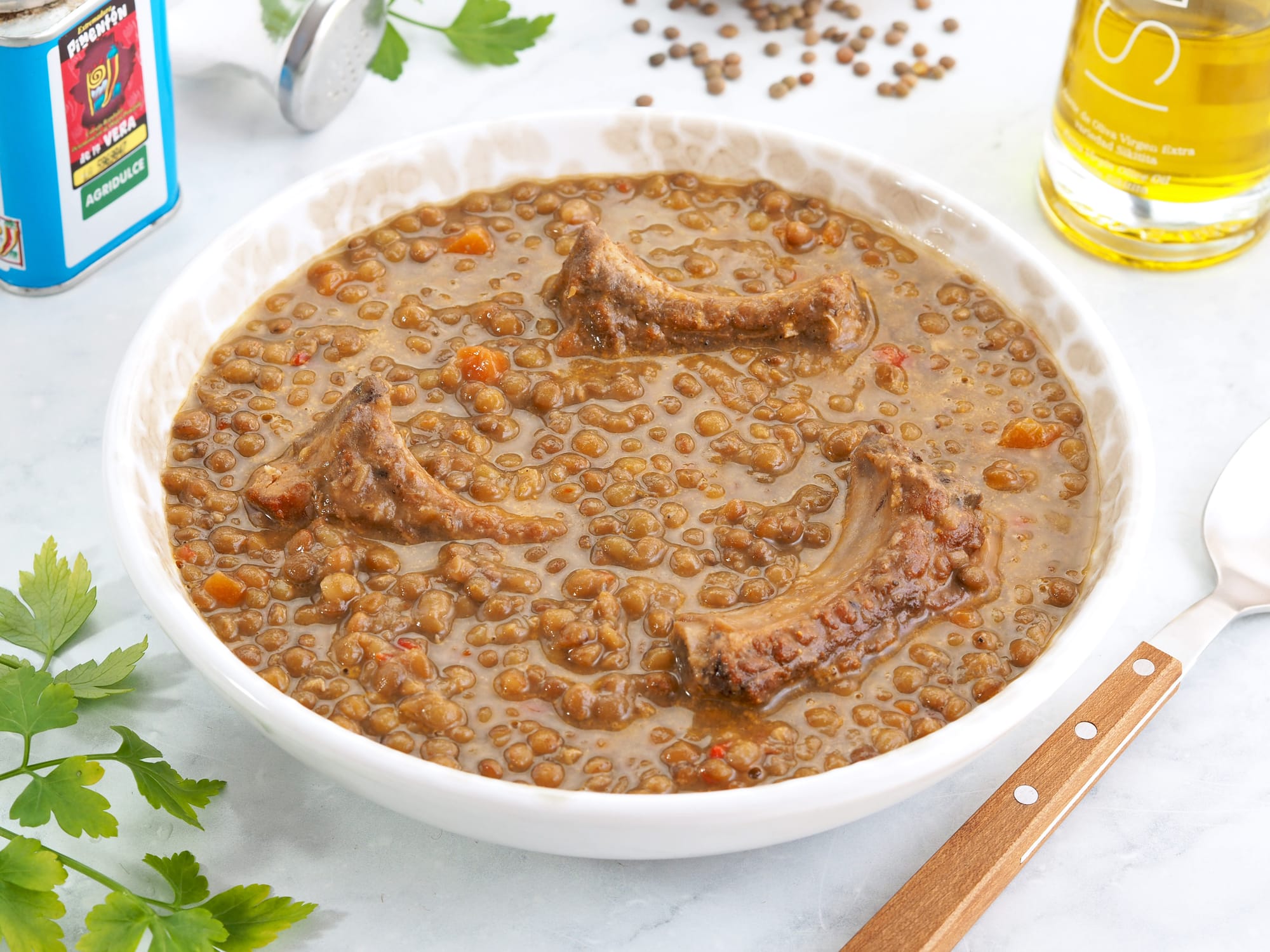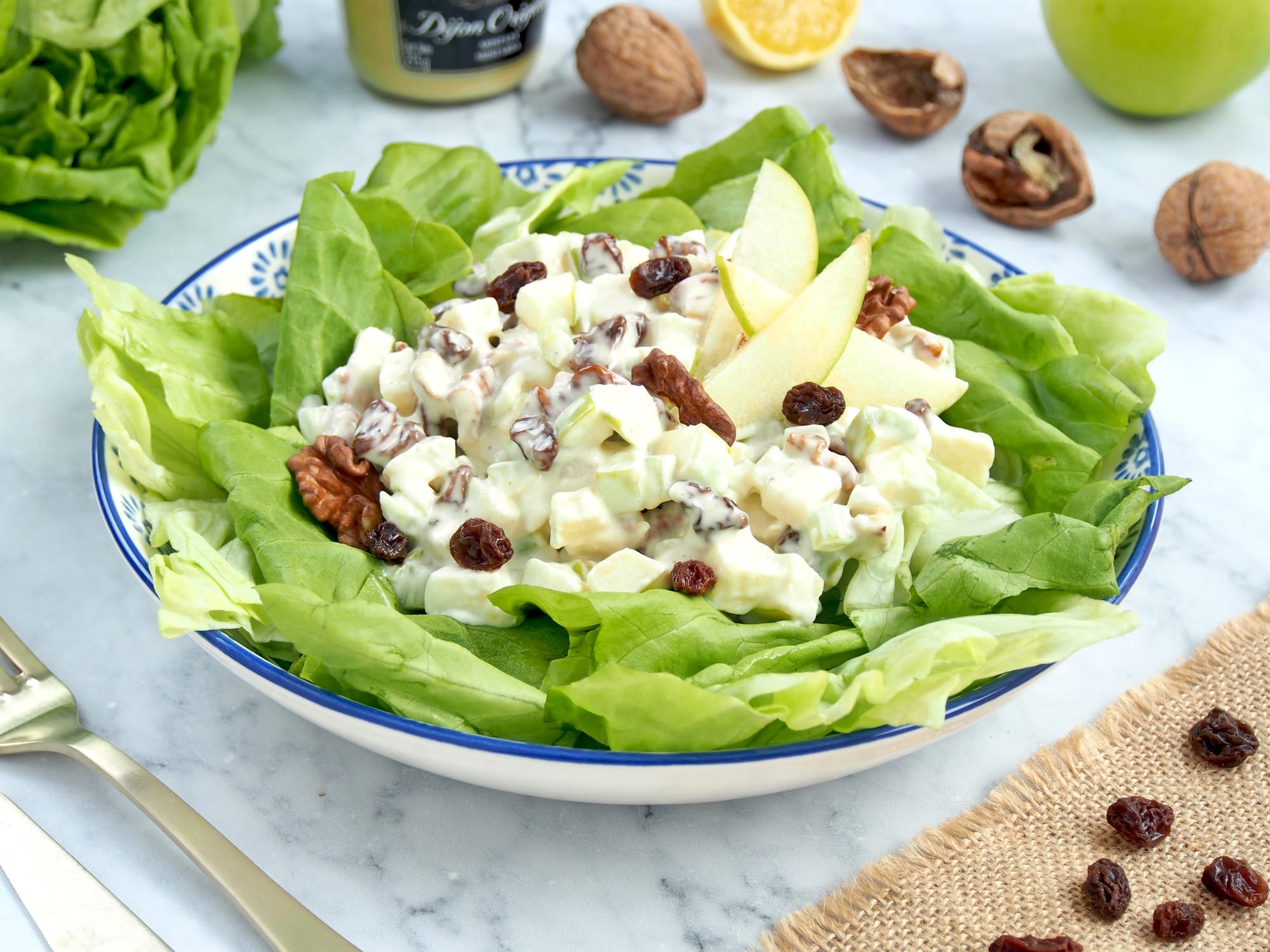- Comida: Para el entrante propongo algo ligero como esta ensalada Waldorf ya que el plato principal son unas lentejas con costillas y de postre un clásico arroz con leche.