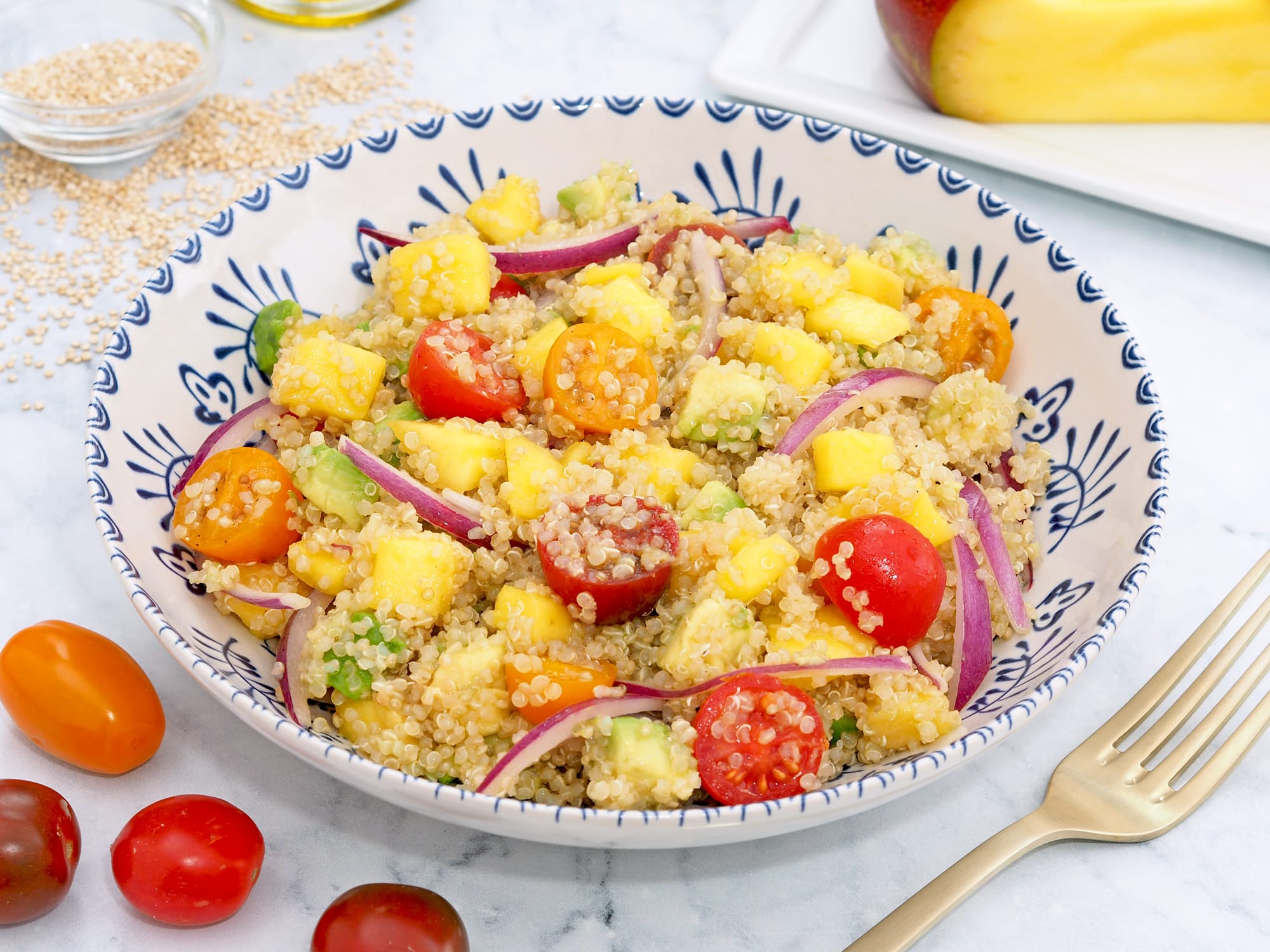 - Cena: Para la cena del domingo, las propuestas son todas de platos ligeros: una crema de calabacín como receta de cuchara, una coliflor rehogada y una ensalada de quinoa con mango y aguacate.