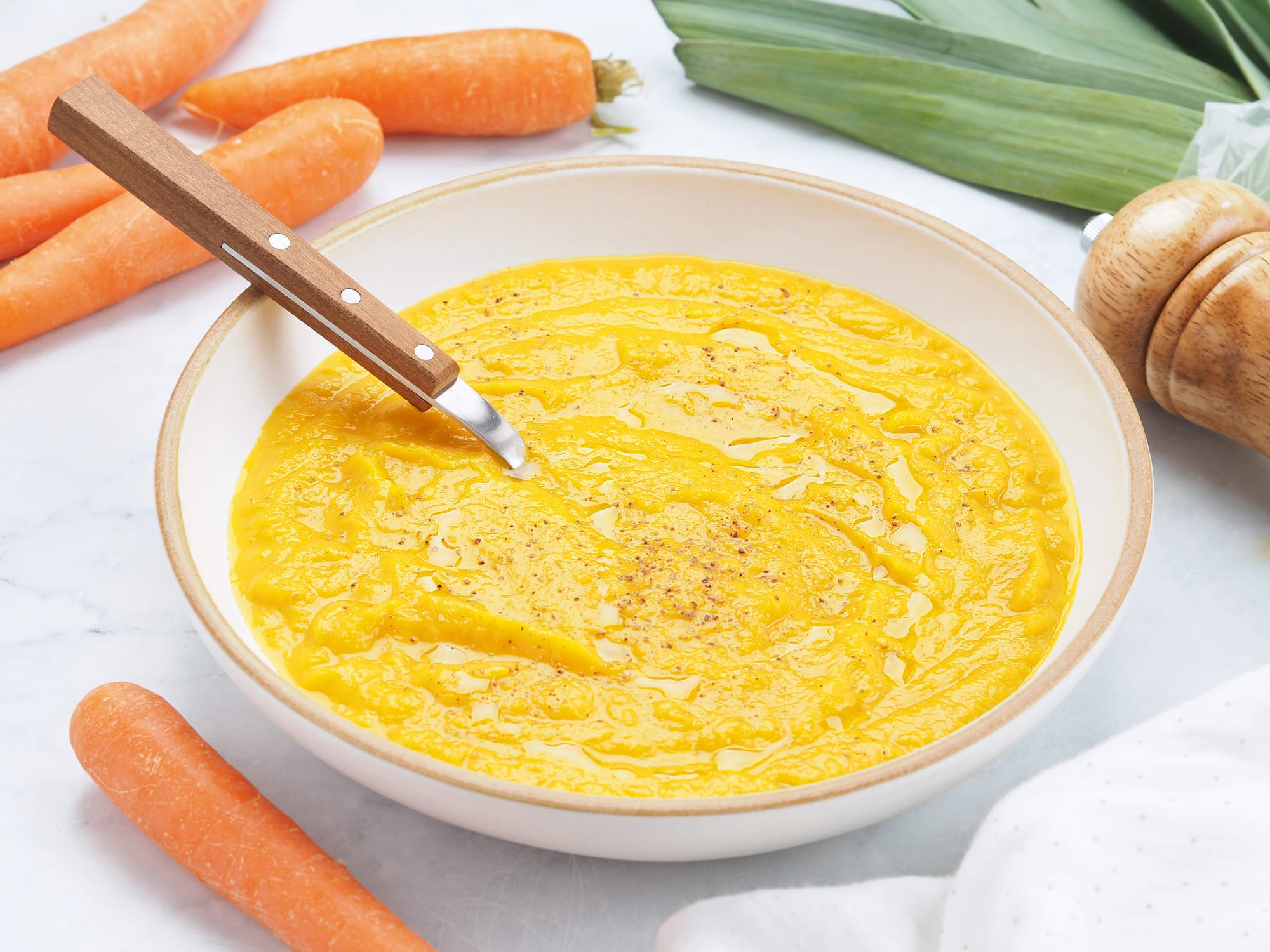 - Cena: Como plato de cuchara podemos preparar un puré de zanahoria y las otras propuestas son unas migas de coliflor con huevo frito y unas hamburguesas de pavo.