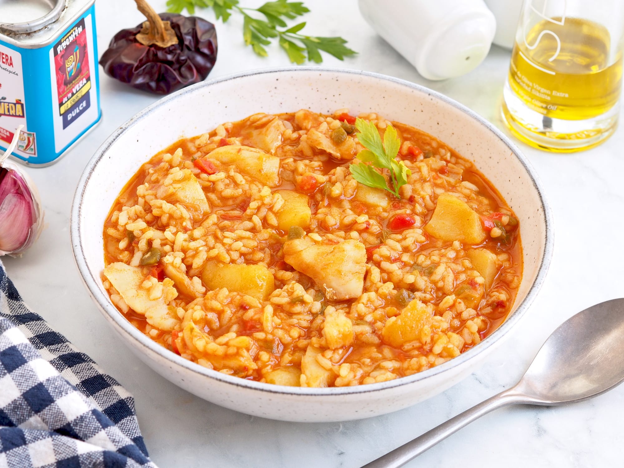 - Comida: De entrante podemos preparar una alboronía, un arroz con patatas y bacalao de plato principal y de postre bandullo, que es un dulce tradicional gallego que se hace con pan duro, aprovechando así los restos de pan que podamos haber acumulado a lo largo de la semana.
