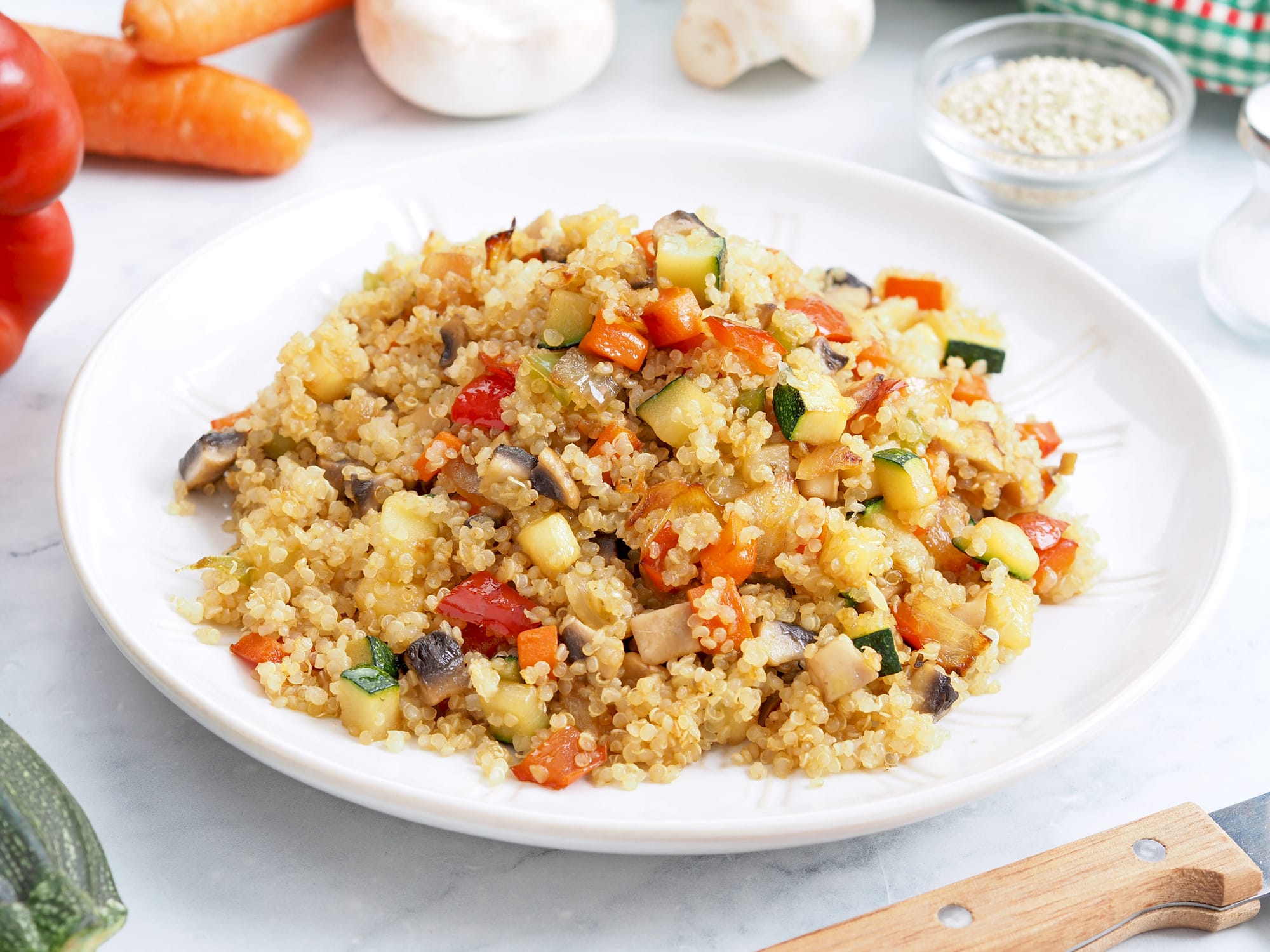 - Cena: Como plato de cuchara podemos preparar una sencilla crema de calabaza con unos picatostes caseros. Las otras dos propuestas son una ensalada de remolacha con manzana y quinoa con verduras.