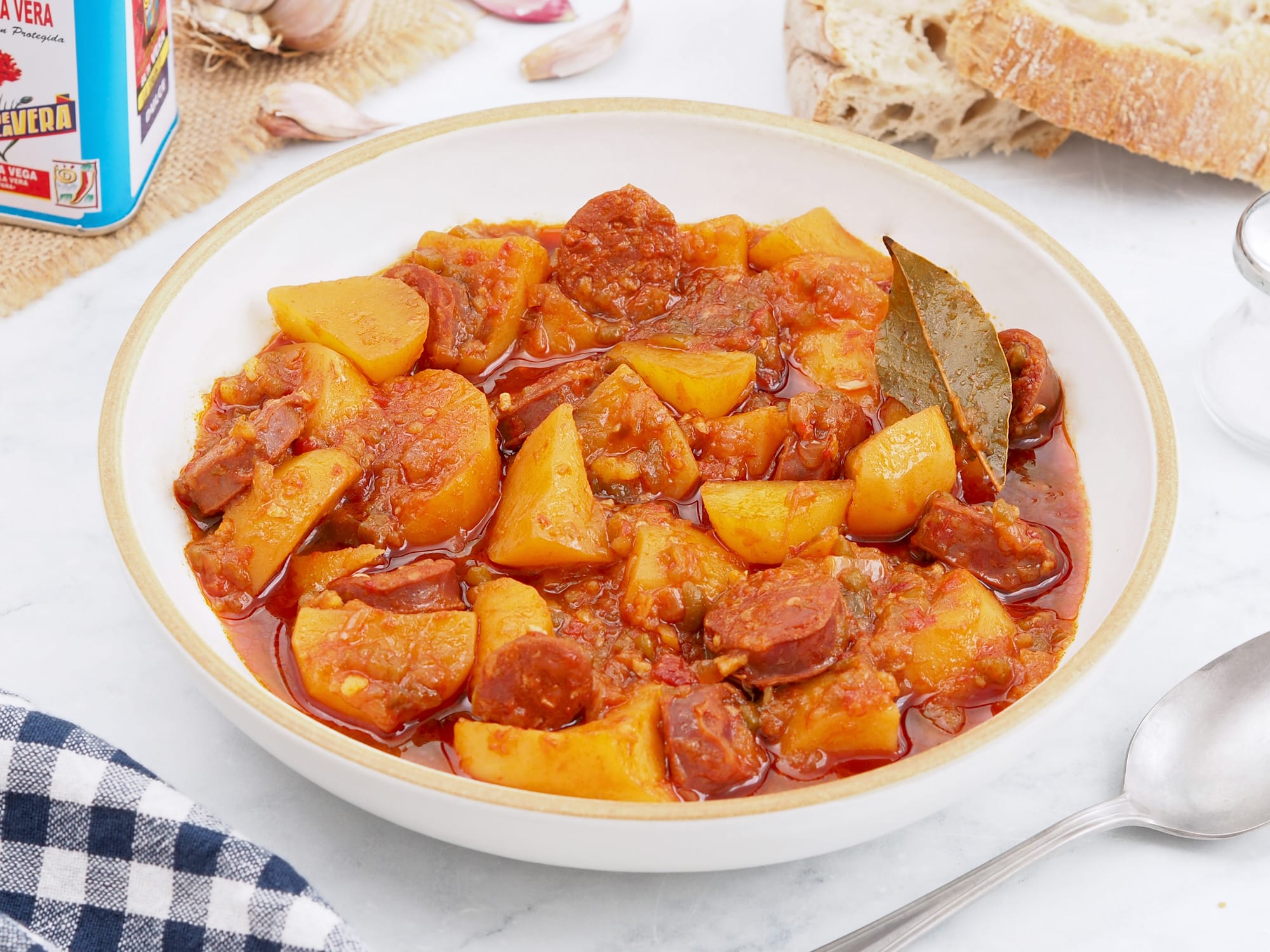- Comida: Para la comida propongo un remojón granadino de entrante aprovechando que estamos en plena temporada de naranjas. De plato principal unas patatas a la riojana y como postre una serradura portuguesa que podemos dejar preparada de víspera.