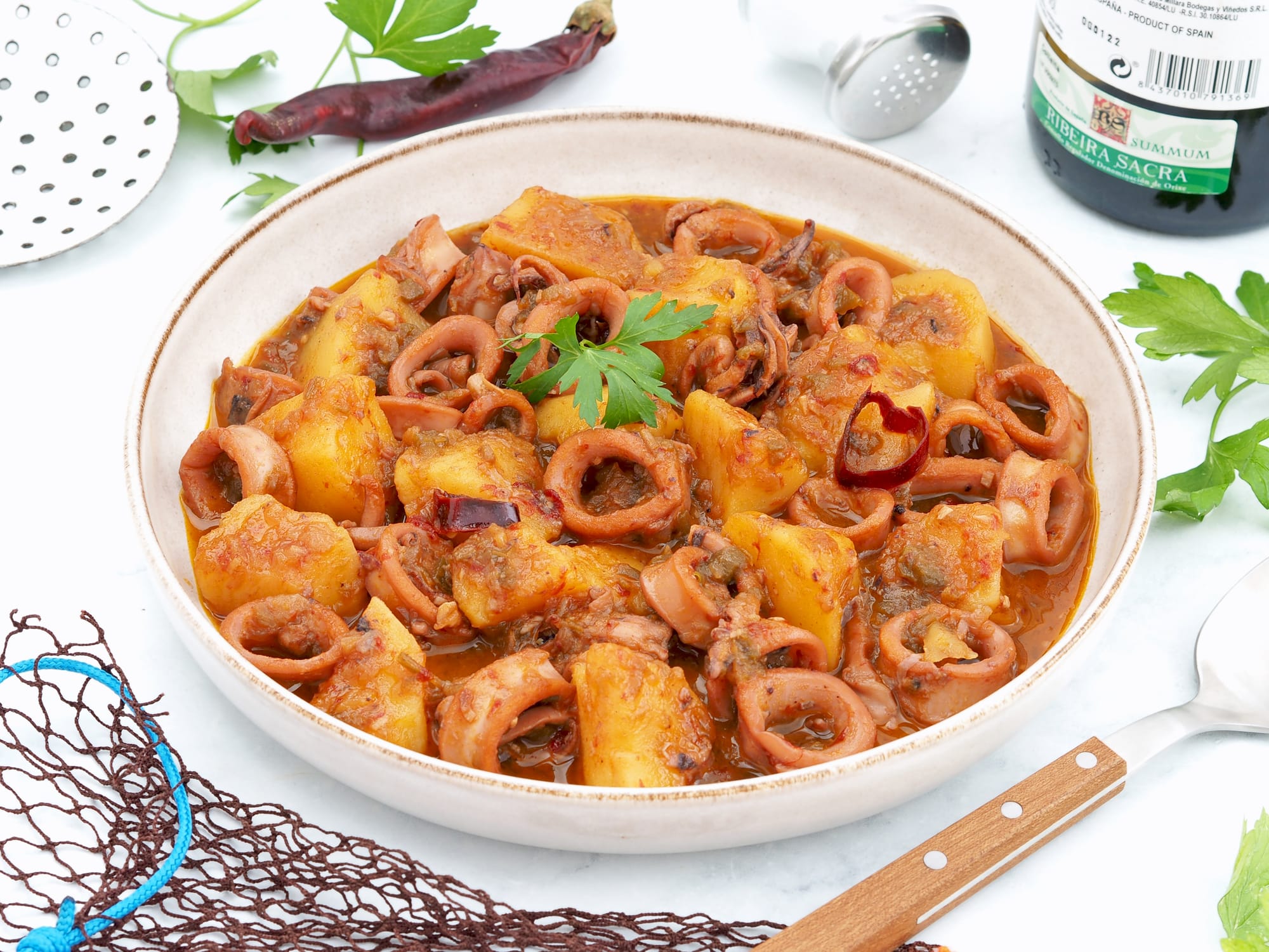 - Comida: De entrante podemos preparar una crema de setas y después, unos calamares guisados con patatas de plato principal y una mousse de yogur para el postre.